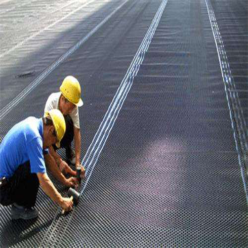 塑料排水板是由聚苯乙烯(HIPS)或者是聚乙烯(HDPE)为原料塑胶底板经过冲压制成圆锥突台或者加劲肋的凸点(或中空圆柱形多孔)而成,经过不断的创新研发原料得到巨大提升和变更,现由聚氯乙烯(PVC)为原料压制而成,抗压强度和整体平整度得到大幅度的提升,幅宽有1~3米,长度有4~10米或者以上。